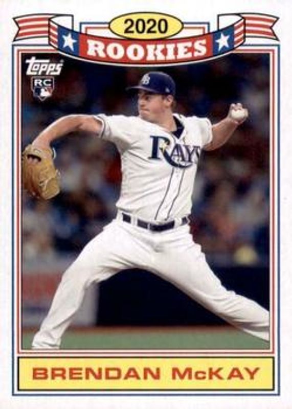 The Brendan McKay 2020 Topps Archives #90R-BM 1990 Topps Rookies card is 1 of 23 Brendan McKay's card variations in the 2020 Topps Archives set being tracked by Sports Card Investor, including Base, Silver Holo-Foil, Purple /175, Silver /99, and Red /75.