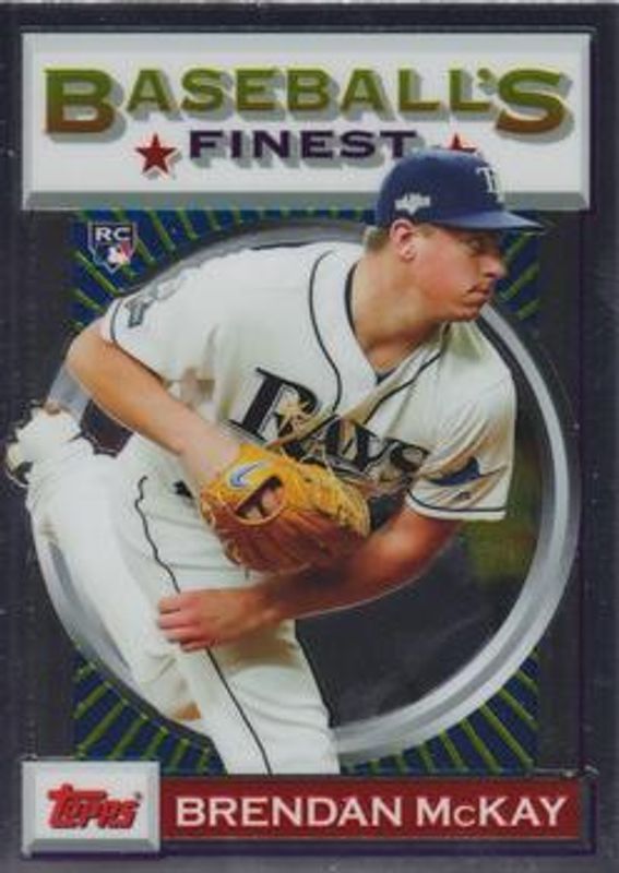 The Brendan McKay 2020 Topps Finest Flashbacks #180 Base Rookie card is 1 of 11 Brendan McKay's card variations in the 2020 Topps Finest Flashbacks set being tracked by Sports Card Investor, including Refractor, Gold /50, Black /25, Red /5, and Superfractor /1.