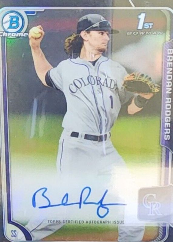 This card is 1 of 9 Brendan Rodgers' card variations in the 2015 Bowman Draft set being tracked by Sports Card Investor, including Chrome DP Auto (1st), Chrome DP Auto - Refractor (1st), Chrome DP Auto - Purple Refractor /250 (1st), Chrome DP Auto - Green Refractor /99 (1st), and Chrome DP Auto - Gold Refractor /50 (1st).