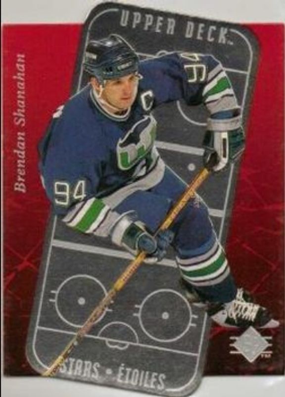 The Brendan Shanahan 1995 SP #E16 Stars card is 1 of 3 Brendan Shanahan's card variations in the 1995 SP set being tracked by Sports Card Investor, including Base, and Stars - Gold.