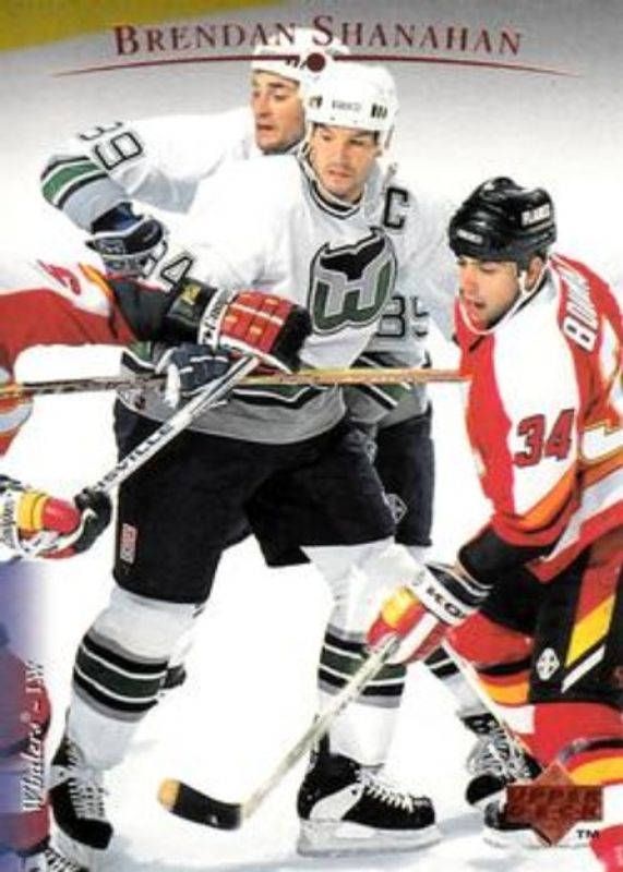 The Brendan Shanahan 1995 Upper Deck #184 Base card is 1 of 9 Brendan Shanahan's card variations in the 1995 Upper Deck set being tracked by Sports Card Investor, including Electric Ice, Electric Ice Gold, Predictors All Star MVP, Predictors All Star MVP Exchange, and Predictors Retail.