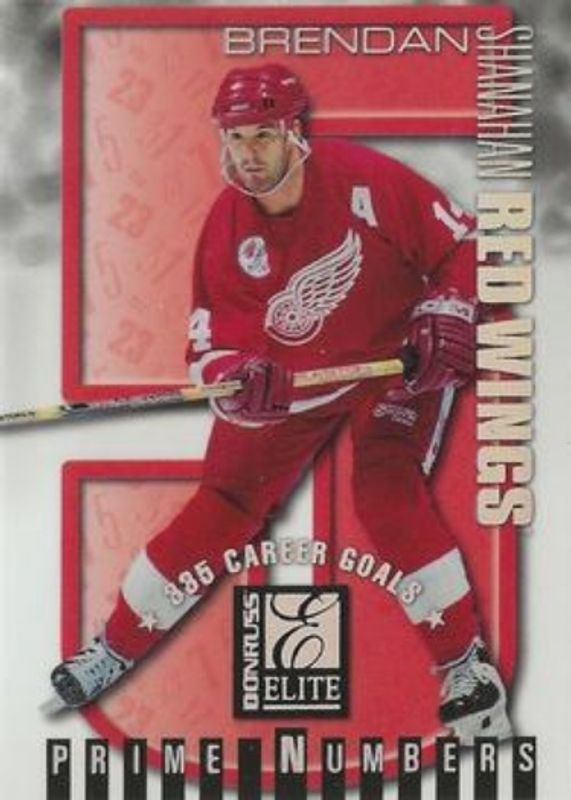 The Brendan Shanahan 1997 Donruss Elite #9c Prime Numbers /254 card is 1 of 23 Brendan Shanahan's card variations in the 1997 Donruss Elite set being tracked by Sports Card Investor, including #133 Base, #18 Base, #18 Aspirations, #133 Aspirations, and #9a Prime Numbers Promos.
