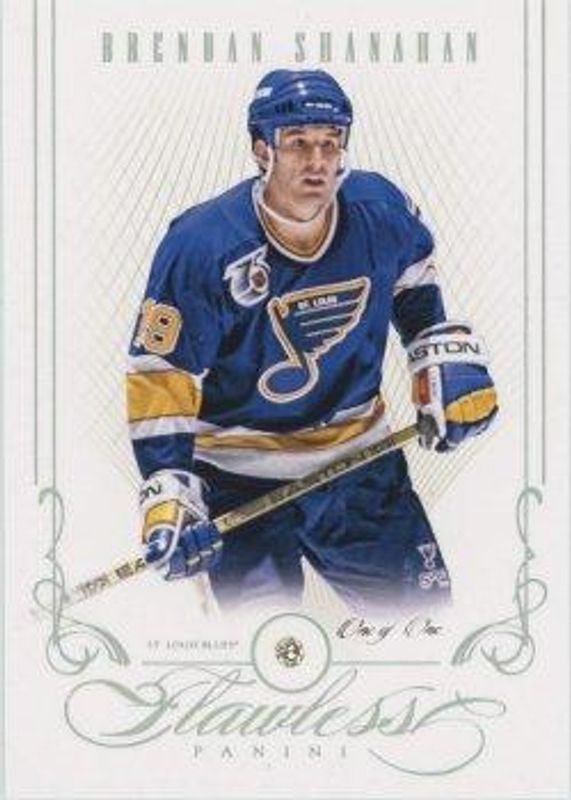 The Brendan Shanahan 2013 National Treasures #167 Flawless Platinum /1 card is 1 of 36 Brendan Shanahan's card variations in the 2013 National Treasures set being tracked by Sports Card Investor, including Base /99, Gold /25, Silver /25, Emerald /5, and Black /1.