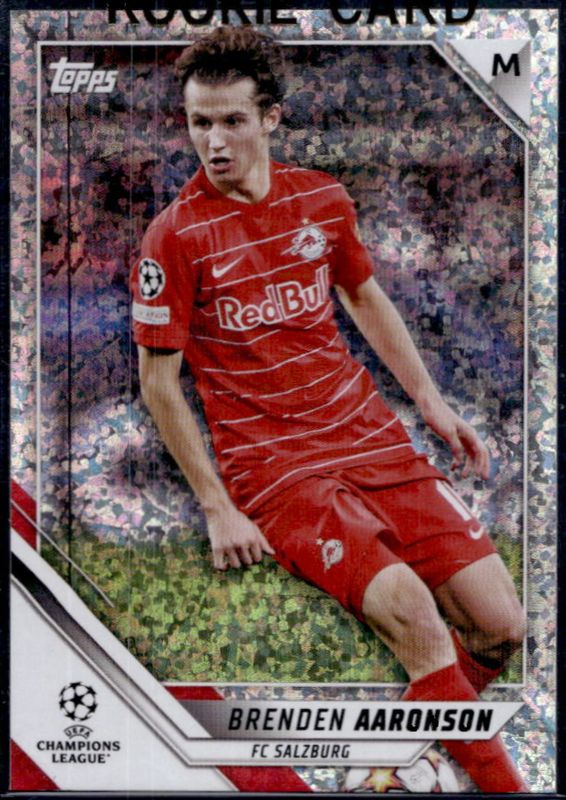 The Brenden Aaronson 2021 Topps UEFA Champions League #122 Sparkle Foil Rookie card is 1 of 26 Brenden Aaronson's card variations in the 2021 Topps UEFA Champions League set being tracked by Sports Card Investor, including Base, Starball Foil, Aqua Foil /299, Yellow Foil /250, and Neon Green Foil /199.