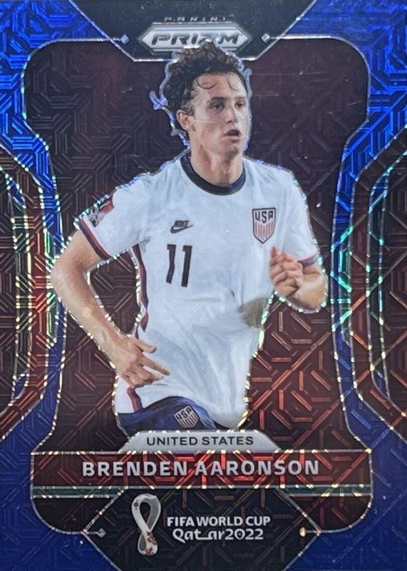 2022 Panini Prizm World Cup Brenden Aaronson Blue mojo 20/75 USA USMNT Leeds