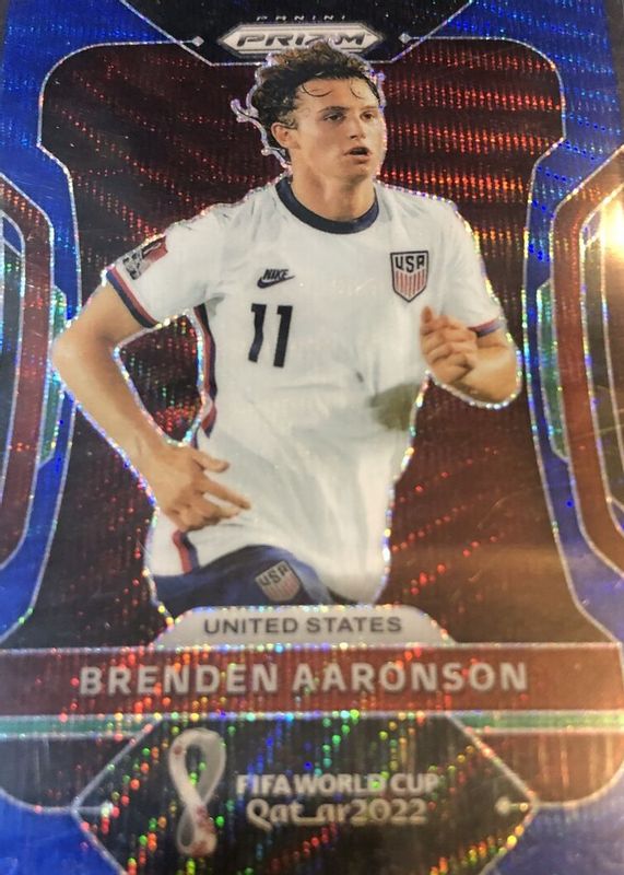 BRENDEN AARONSON 2022 PRIZM WORLD CUP Blue Wave Prizm SP 11/199 Number Match