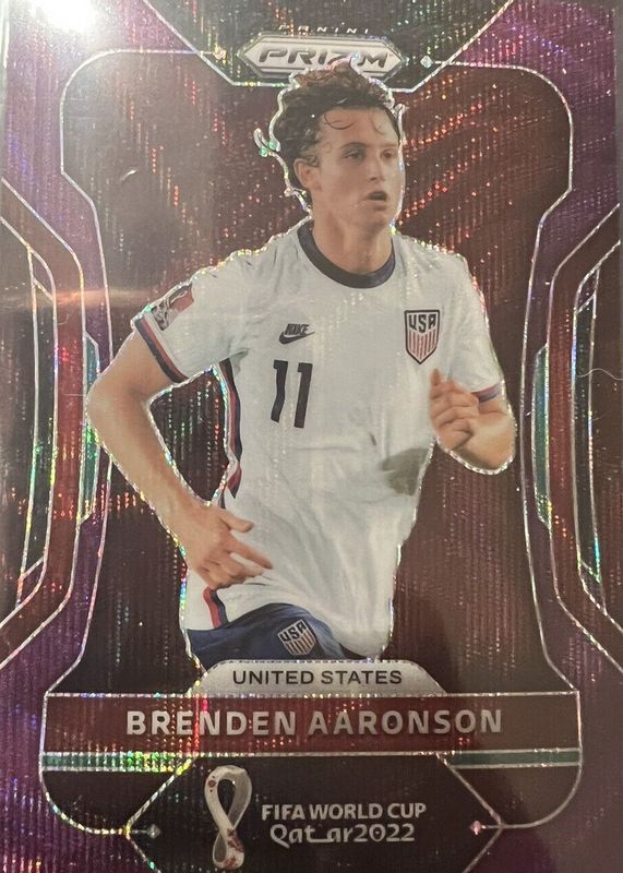 2022 Panini Prizm FIFA World Cup Soccer Brenden Aaronson USMNT Purple Wave 57/99