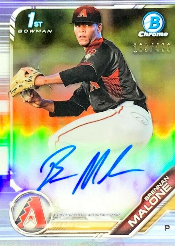 Brennan Malone 2019 Bowman Chrome 1st Auto /499 Refractor Arizona Diamondbacks