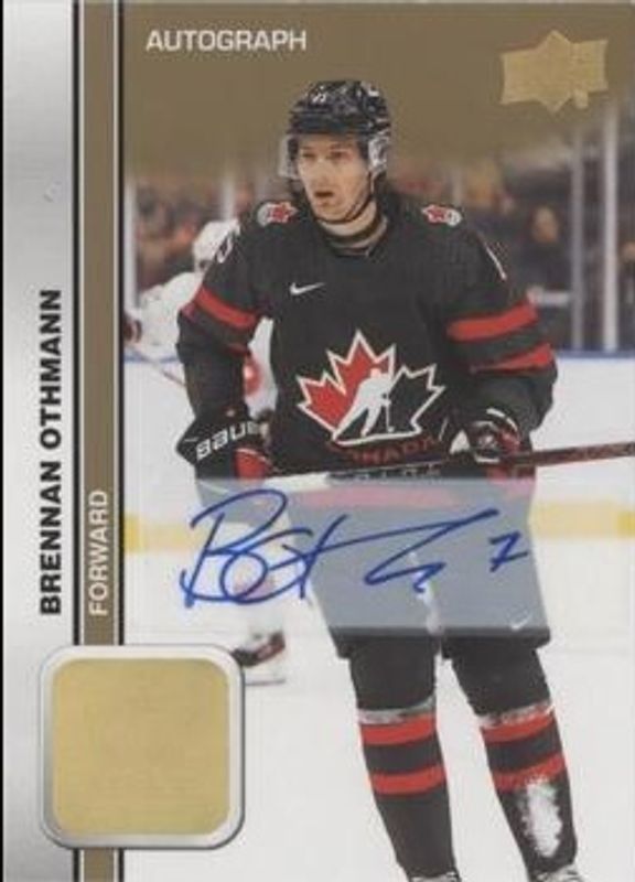 The Brennan Othmann 2023 Upper Deck Team Canada Juniors #4 Signatures card is 1 of 85 Brennan Othmann's card variations in the 2023 Upper Deck Team Canada Juniors set being tracked by Sports Card Investor, including #66 Base, #137 Base, #4 Base, #66 Clear Cut, and #4 Clear Cut.