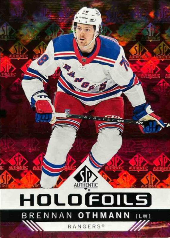 The Brennan Othmann 2024 SP Authentic #HF-28 Holofoil Rookie card is 1 of 41 Brennan Othmann's card variations in the 2024 SP Authentic set being tracked by Sports Card Investor, including Base /999, Auto Mystery Black, Future Watch Acetate, Limited Red, and Limited Blue /399.