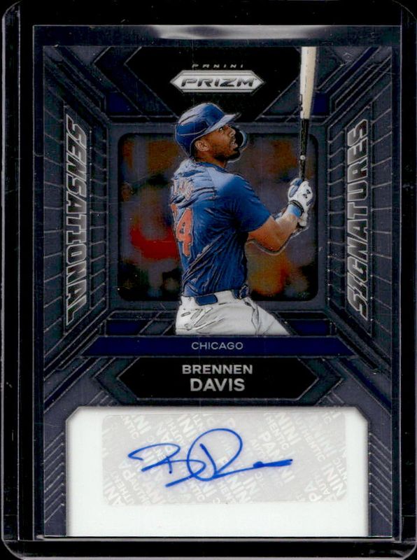 The Brennen Davis 2024 Prizm #SS-BD Sensational Signatures card is 1 of 12 Brennen Davis' card variations in the 2024 Prizm set being tracked by Sports Card Investor, including Sensational Signatures - Green, Sensational Signatures - Pulsar /199, Sensational Signatures - Red /99, Sensational Signatures - Blue /49, and Sensational Signatures - Green Pulsar /25.