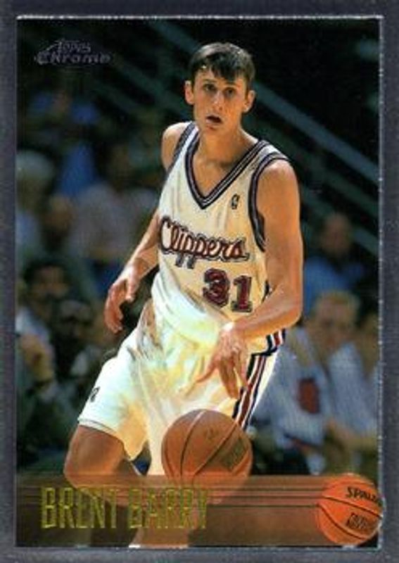 The Brent Barry 1996 Topps Chrome #60 Base card is 1 of 3 Brent Barry's card variations in the 1996 Topps Chrome set being tracked by Sports Card Investor, including Refractor, and Youthquake.