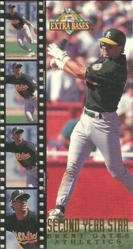 The Brent Gates 1994 Fleer Extra Bases #8 Second Year Stars card is 1 of 2 Brent Gates' card variations in the 1994 Fleer Extra Bases set being tracked by Sports Card Investor, including Base.