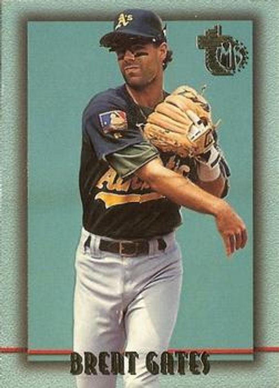 The Brent Gates 1995 Topps Embossed #17 Base card is 1 of 2 Brent Gates' card variations in the 1995 Topps Embossed set being tracked by Sports Card Investor, including Golden Idols.