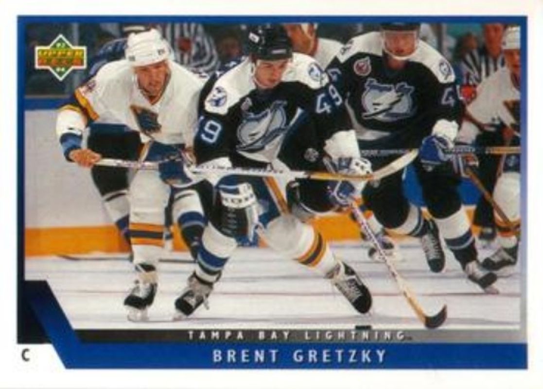 The Brent Gretzky 1993 Upper Deck #354 Base Rookie card is 1 of 2 Brent Gretzky's card variations in the 1993 Upper Deck set being tracked by Sports Card Investor, including SP.