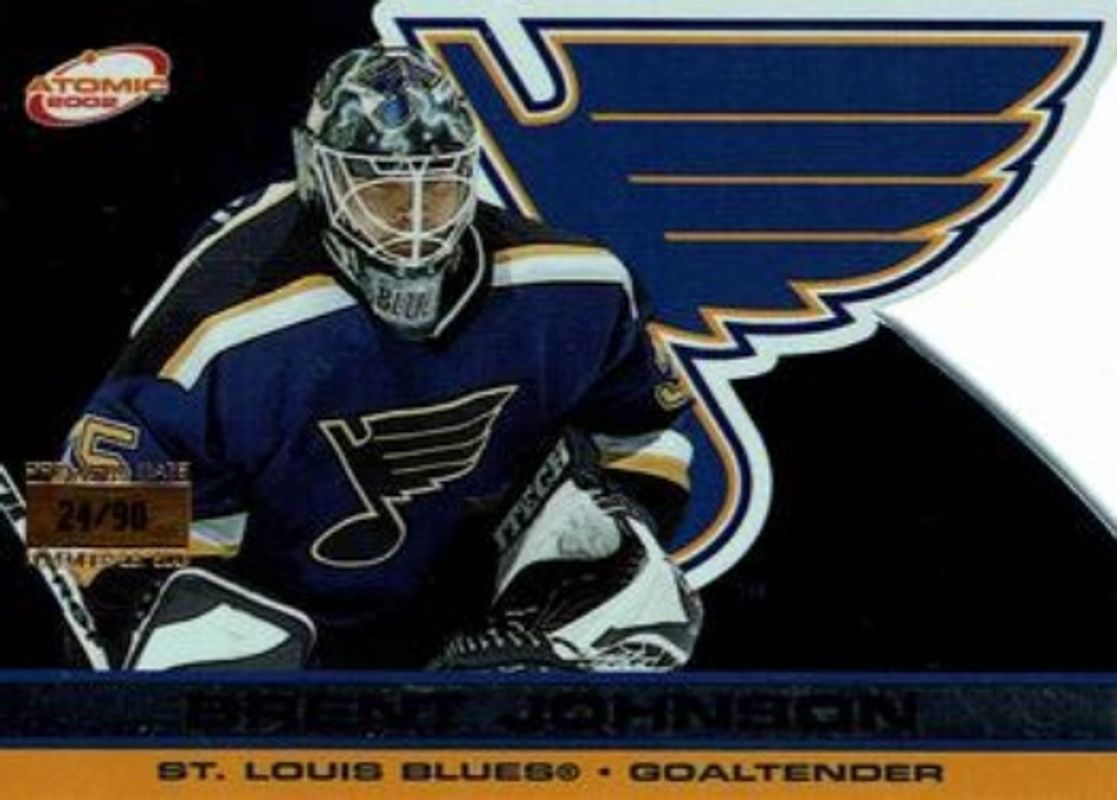 The Brent Johnson 2001 Pacific Atomic #81 Premiere Date /90 card is 1 of 5 Brent Johnson's card variations in the 2001 Pacific Atomic set being tracked by Sports Card Investor, including Base /500, Red /290, Gold /200, and Blue /9.