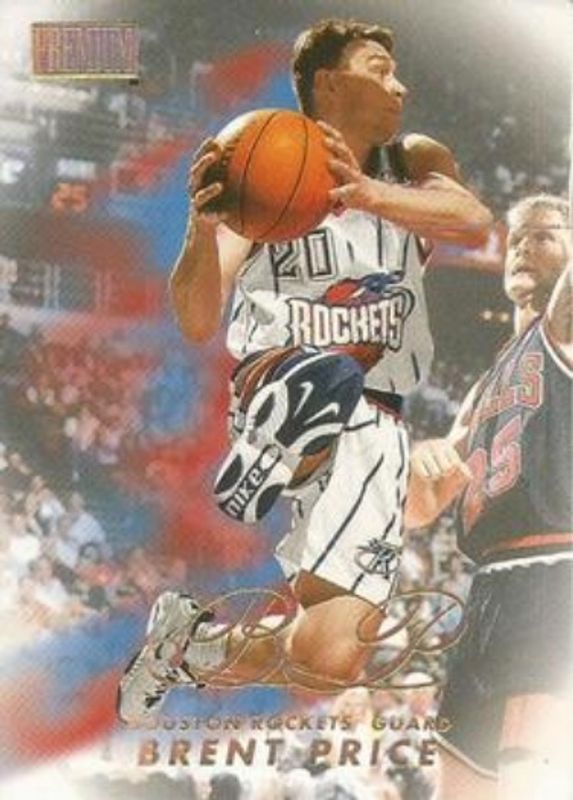 The Brent Price 1998 Skybox Premium #108 Base card is 1 of 4 Brent Price's card variations in the 1998 Skybox Premium set being tracked by Sports Card Investor, including Star Rubies /50, Autographics, and Autographics Blue /50.