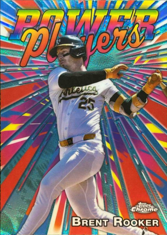 The Brent Rooker 2025 Topps Chrome #PP-3 Power Players card is 1 of 72 Brent Rooker's card variations in the 2025 Topps Chrome set being tracked by Sports Card Investor, including Base, Geometric Refractor, Image Variation, Lightboard Logo Variation, and Negative Refractor.