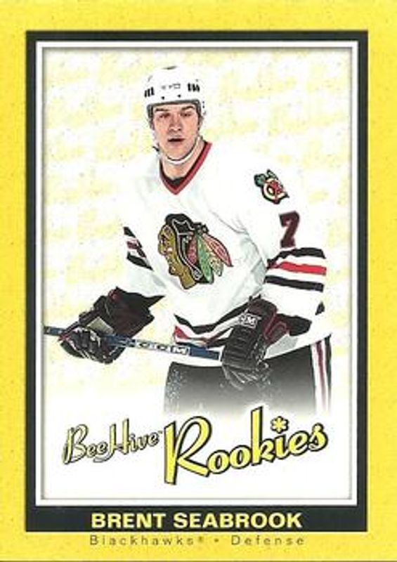 Brent Seabrook's Hockey cards are available in at least 102 sets. Brent Seabrook's biggest 7-day price movers are 2005 Upper Deck The Cup #105 Rookie Patch Auto (/199), 2005 Upper Deck #209 Young Guns Base, and 2025 Upper Deck Chicago Blackhawks Centennial #12 Bronze.