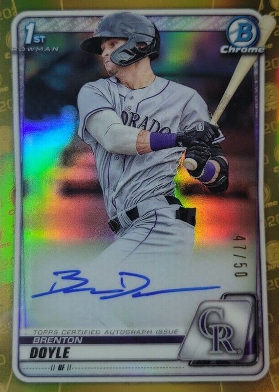 2020 BOWMAN CHROME BRENTON DOYLE AUTO GOLD REFRACTOR 43/50