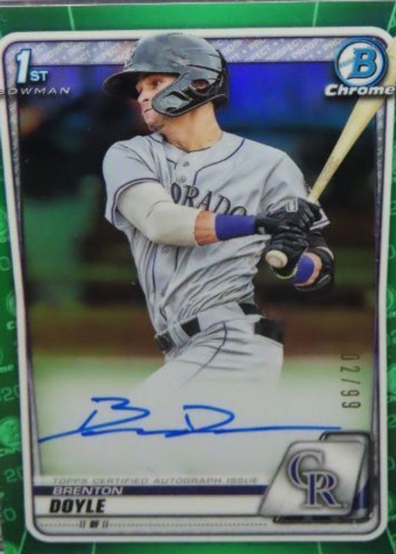BRENTON DOYLE 2020 BOWMAN CHROME #CPA-BD AUTO GREEN REFRACTOR 1ST PROSPECT /99