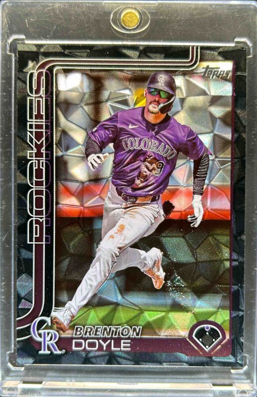 The Brenton Doyle 2025 Topps #44 Black Diamante Foil /10 card is 1 of 82 Brenton Doyle's card variations in the 2025 Topps set being tracked by Sports Card Investor, including Base, Aqua Holo Foil, Diamante Foil, Holo Foil, and Pink Diamante Foil.