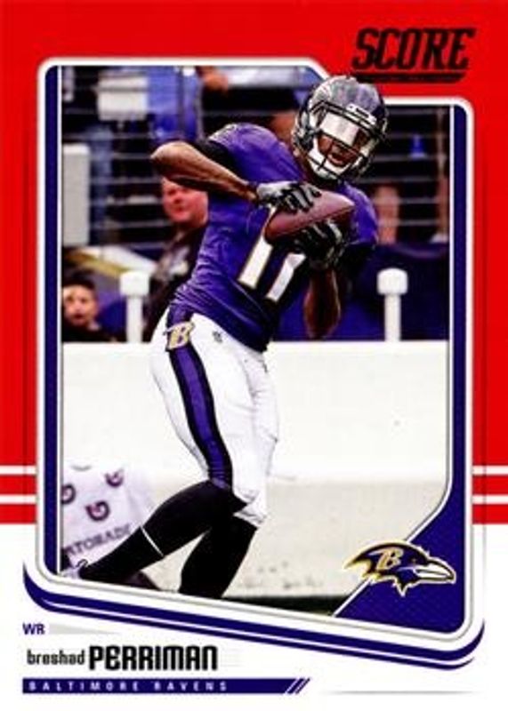 The Breshad Perriman 2018 Score #30 Red card is 1 of 18 Breshad Perriman's card variations in the 2018 Score set being tracked by Sports Card Investor, including Base, Black, Gold, Green, and Purple.
