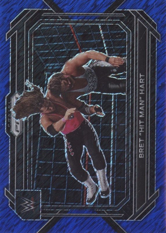 The Bret "Hit Man" Hart 2023 Prizm WWE #58 Blue Shimmer /11 card in Raw condition has not changed in price in the last 30 days and was last sold for $45.00 .