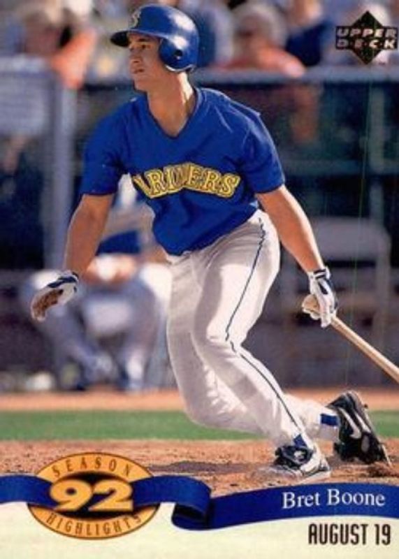 The Bret Boone 1993 Upper Deck #HI6 Season Highlights card is 1 of 3 Bret Boone's card variations in the 1993 Upper Deck set being tracked by Sports Card Investor, including Base, and Gold Hologram.