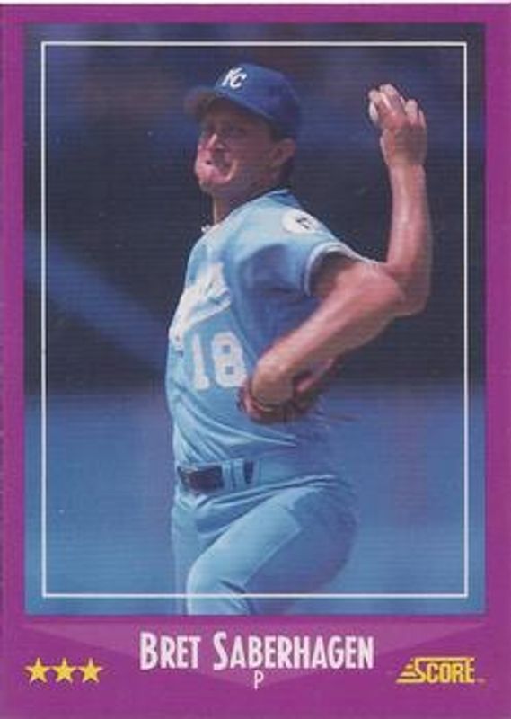 The Bret Saberhagen 1988 Score #89 Glossy card is 1 of 2 Bret Saberhagen's card variations in the 1988 Score set being tracked by Sports Card Investor, including Base.