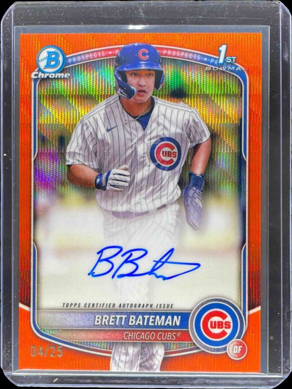 Auctions Ending Soon for Brett Bateman 2025 Bowman Chrome #CPA-BBA Prospect Auto - Orange Wave Refractor /25 (1st) RAW