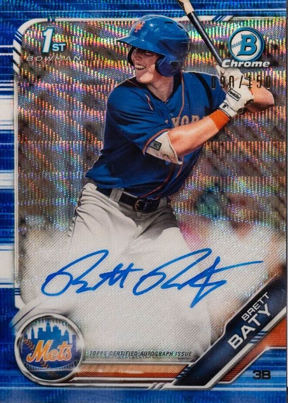 Best Prices Available For Sale of Brett Baty 2019 Bowman Draft #CDA-BB Chrome DP Auto - Blue Wave Refractor /150 (1st)