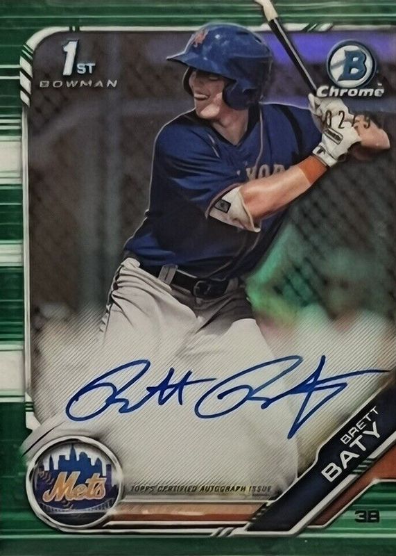 2019 Bowman Chrome Brett Baty 1st Bowman Auto True Green Refractor /99 Mets 🔥