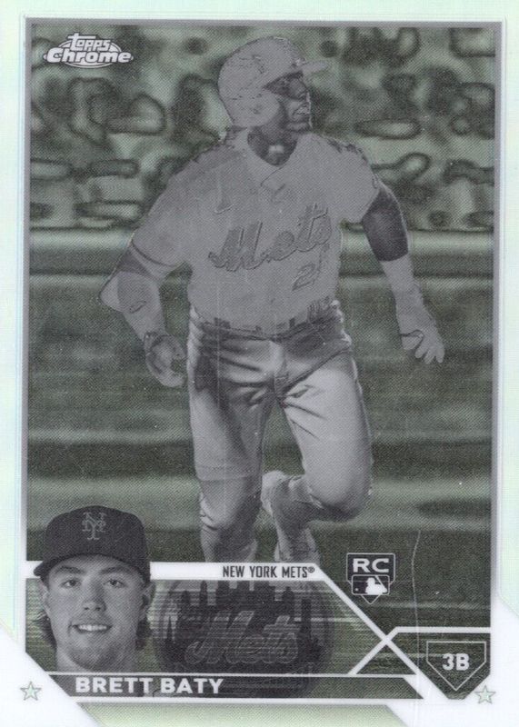 The Brett Baty 2023 Topps Chrome #204 Negative Refractor Rookie card in Raw condition has moved up $7.06 (+142%) in the last 30 days and was last sold for $12.04 .