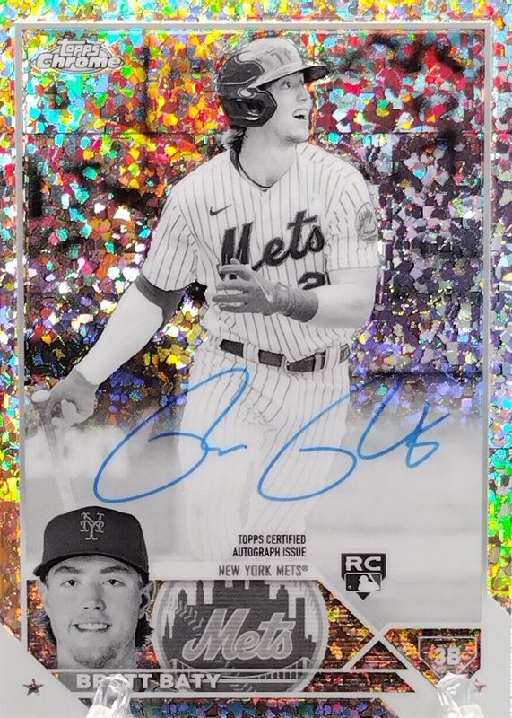 Best Prices Available For Sale of Brett Baty 2023 Topps Chrome #RA-BBA Rookie Autographs - Black & White Mini-Diamond Refractor