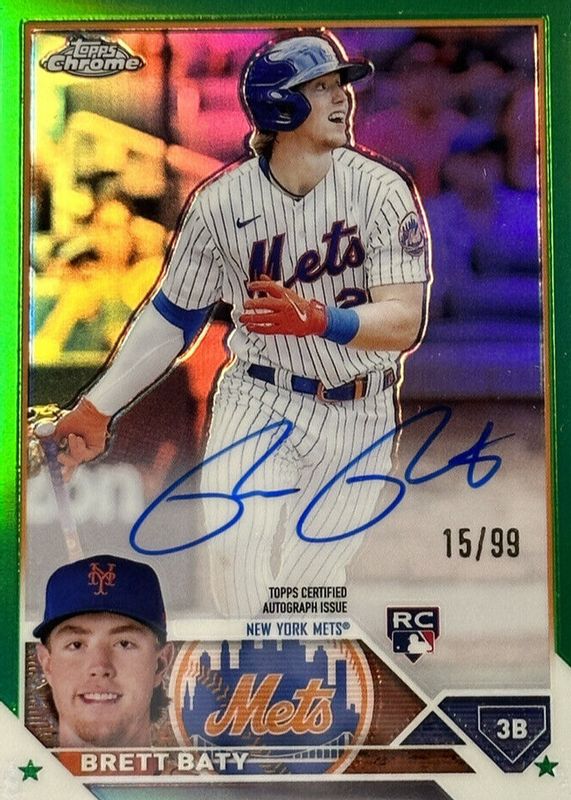 Best Prices Available For Sale of Brett Baty 2023 Topps Chrome #RA-BBA Rookie Autographs - Green Refractor /99