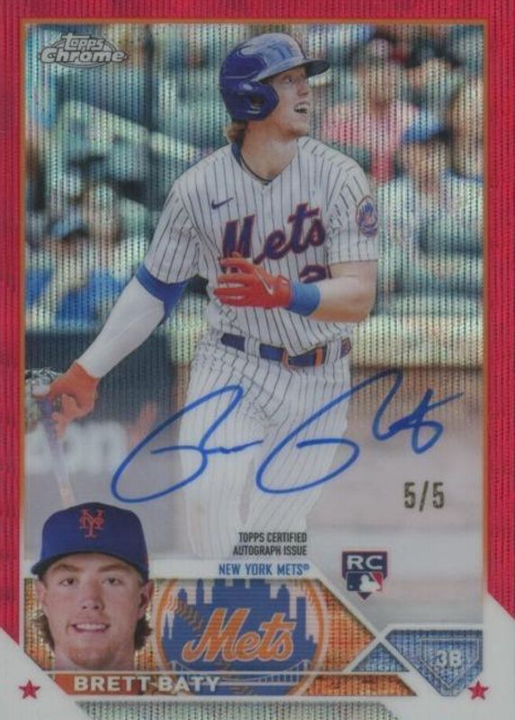 Auctions Ending Soon for Brett Baty 2023 Topps Chrome #RA-BBA Rookie Autographs - Red Wave Refractor /5 RAW