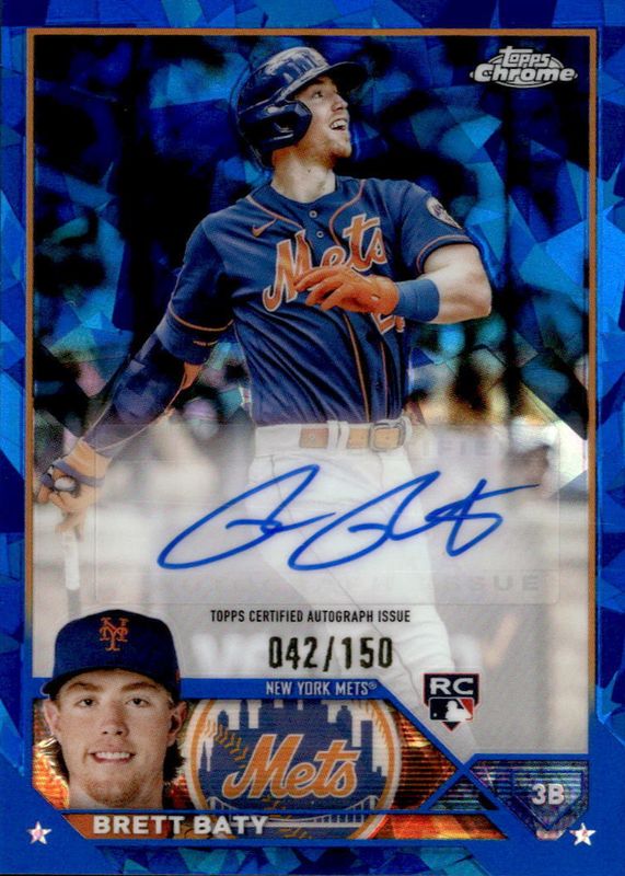 This card is 1 of 14 Brett Baty's card variations in the 2023 Topps Chrome Update Sapphire Edition set being tracked by Sports Card Investor, including Rookie Debut, Rookie Debut - Gold /50, Rookie Debut - Orange /25, Rookie Debut - Black /10, and Rookie Debut - Red /5.