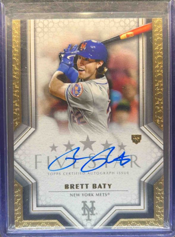 The Brett Baty 2023 Topps Five Star #FSA-BB1 Base Rookie card is 1 of 25 Brett Baty's card variations in the 2023 Topps Five Star set being tracked by Sports Card Investor, including Aqua /75, Purple /50, Blue /25, Green /15, and Gold /10.