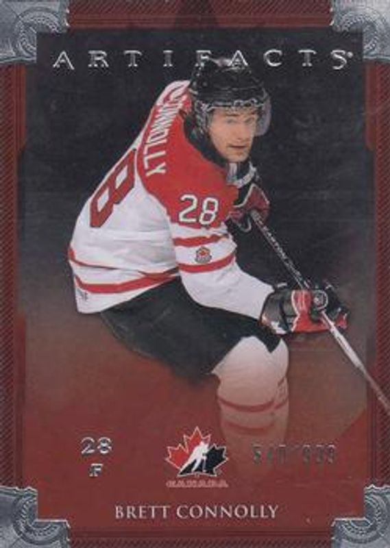 The Brett Connolly 2013 Upper Deck Artifacts #126 Base /899 card is 1 of 18 Brett Connolly's card variations in the 2013 Upper Deck Artifacts set being tracked by Sports Card Investor, including Ruby /299, Emerald /99, Sapphire /85, Spectrum /25, and Black /5.