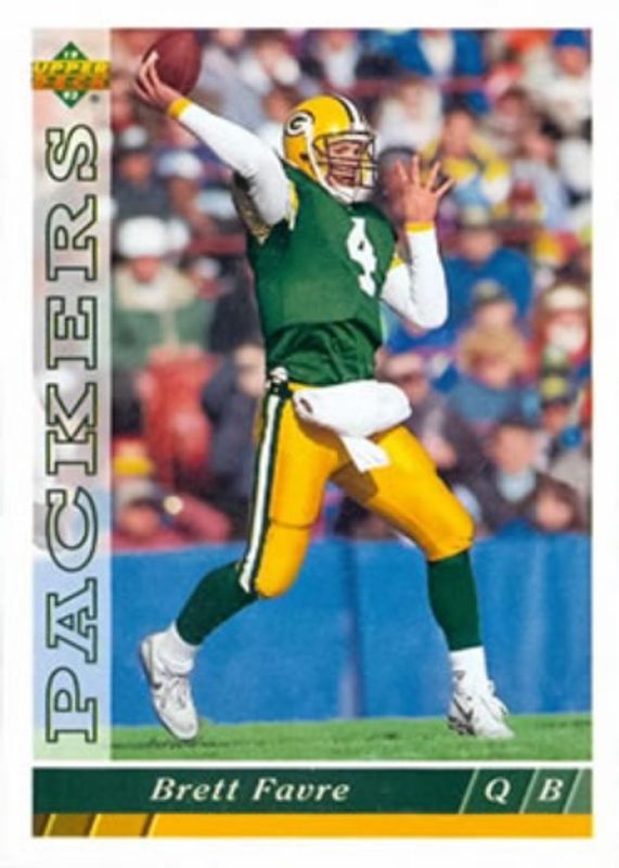 The Brett Favre 1993 Upper Deck #360 Base card is 1 of 4 Brett Favre's card variations in the 1993 Upper Deck set being tracked by Sports Card Investor, including Base, Future Heroes, and Pro Bowl.