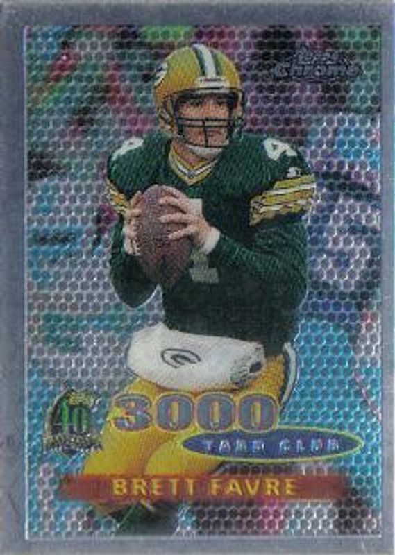 The Brett Favre 1996 Topps Chrome #131 Base card is 1 of 7 Brett Favre's card variations in the 1996 Topps Chrome set being tracked by Sports Card Investor, including #145 Base, #131 3,000 Yard Club - Refractor, #145 Refractor, #131 Refractor, and #7 40th Anniversary Retros.