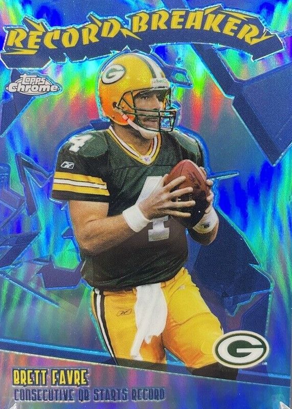 The Brett Favre 2003 Topps Chrome #RB2 Record Breakers - Refractor /100 card in Raw condition has not changed in price in the last 30 days and was last sold for $100.00 .