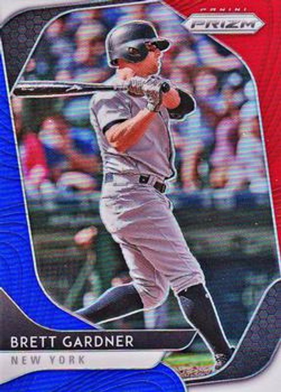 The Brett Gardner 2020 Prizm #122 Red White Blue card is 1 of 37 Brett Gardner's card variations in the 2020 Prizm set being tracked by Sports Card Investor, including Base, Blue, Carolina Blue, Cosmic Haze, and Green.