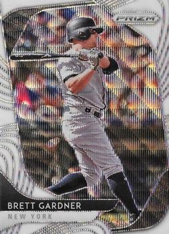 The Brett Gardner 2020 Prizm #122 White Wave card is 1 of 37 Brett Gardner's card variations in the 2020 Prizm set being tracked by Sports Card Investor, including Base, Blue, Carolina Blue, Cosmic Haze, and Green.