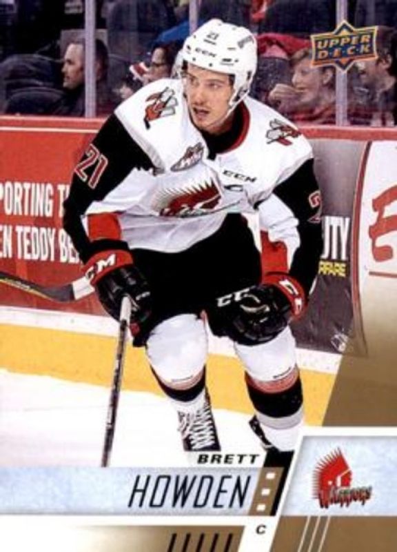The Brett Howden 2017 Upper Deck CHL #70 Base card is 1 of 8 Brett Howden's card variations in the 2017 Upper Deck CHL set being tracked by Sports Card Investor, including Rainbow, Red Bordered, Printing Plates Black /1, Printing Plates Cyan /1, and Printing Plates Magenta /1.