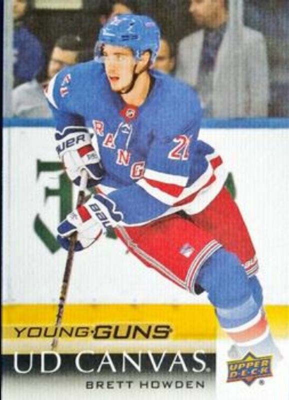 The Brett Howden 2018 Upper Deck #C224 Young Guns Canvas Rookie card is 1 of 28 Brett Howden's card variations in the 2018 Upper Deck set being tracked by Sports Card Investor, including Young Guns Base, Young Guns - Clear Cut, Young Guns - Jumbo, Young Guns - Silver Foil, and Young Guns - Speckled Rainbow Foil.