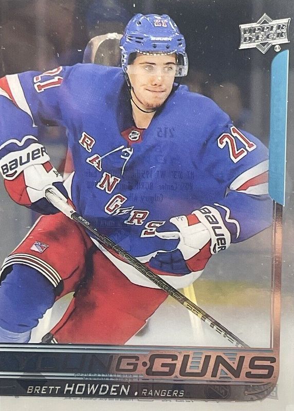 This card is 1 of 7 Brett Howden's card variations in the 2018 Upper Deck set being tracked by Sports Card Investor, including Young Guns Base, Young Guns - Jumbo, Young Guns - Silver Foil, Young Guns - Speckled Rainbow Foil, and Young Guns - UD Exclusives /100.
