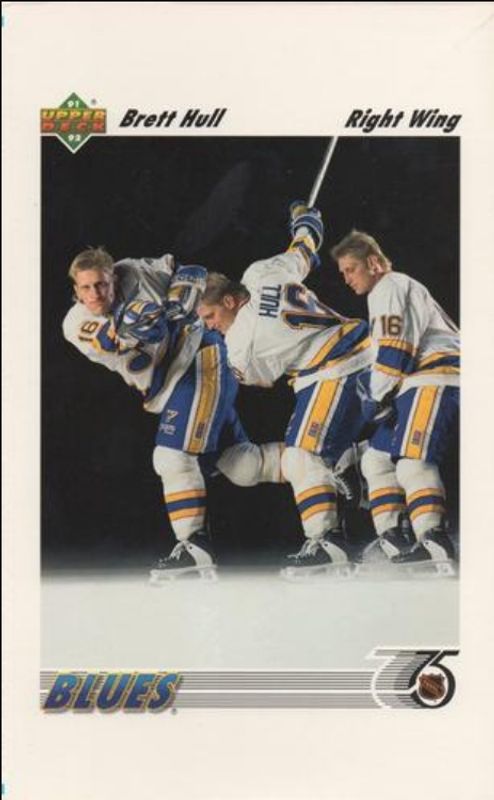 The Brett Hull 1991 Upper Deck Box Bottoms card is 1 of 16 Brett Hull's card variations in the 1991 Upper Deck set being tracked by Sports Card Investor, including #622 Base, #33 Base, #33b Base, #464 Base, and #AW3 Award Winner Holograms.