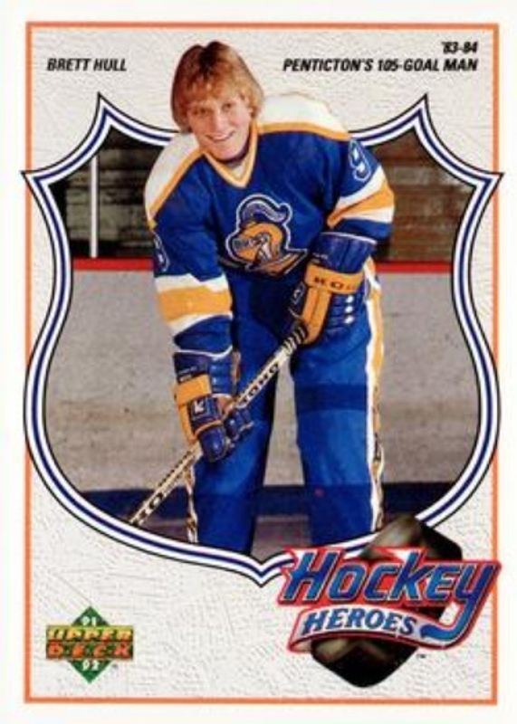 The Brett Hull 1991 Upper Deck #1 Hockey Heroes: Brett Hull card is 1 of 16 Brett Hull's card variations in the 1991 Upper Deck set being tracked by Sports Card Investor, including #622 Base, #33 Base, #33b Base, #464 Base, and #AW3 Award Winner Holograms.